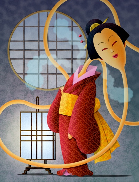蛇のように、首がにょきにょきと伸びる妖怪。普段は、普通の人間と同じ姿をしていて、人間とまったく同じ生活をしているため、見分けは付きません。それどころか、ろくろ首は、自分が妖怪だということに、気がついていないといわれています。 首が伸びる時は、本人が寝ている時や、意識を失っている場合が多いからです。なんとも奇妙な妖怪ですが、人を襲うようなことは無いようです。